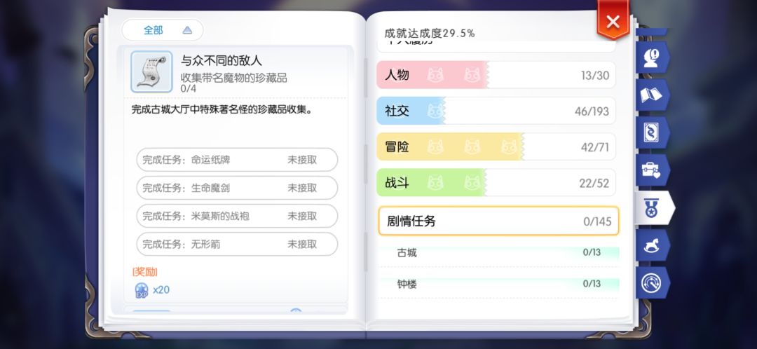 任务:与众不同的敌人,要打的怪我在百度找到了(带名字的裘卡,带名字的邪骸浪人,幽灵弓箭手等等)然后打出来的收藏品和要求上的不同,任务手册显示末接任务,但我已经找遍古城所有NPC了,还是找不到,正在做恶魔翅膀,就剩下这个了,求知道的大佬教一下,谢谢!