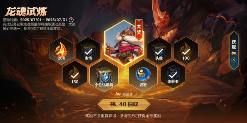 龙魂试炼阶段三火热进行中!截止至7月31日,召唤师完成对应阶段任务,即可实现海牛骑手 库奇、龙魂水晶*3000和专属大奖随心三选一。
