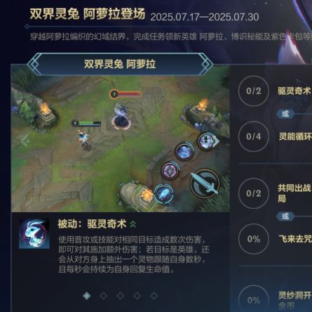 即日起至7月30日23:59活动期间,穿越阿萝拉编织的幻域结界,完成活动任务即可领取新英雄双界灵兔 阿萝拉、博识秘能*200、传奇图集四星卡包(紫)和传奇图集三星卡包(蓝)等好礼~