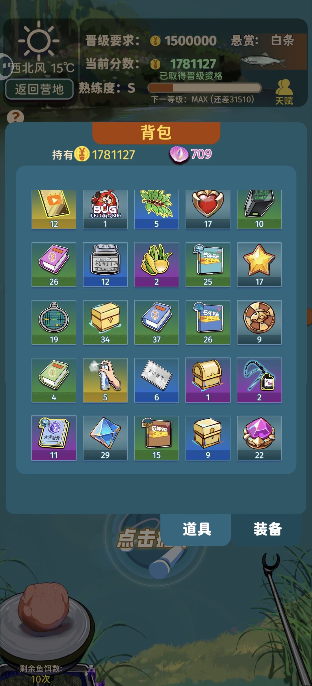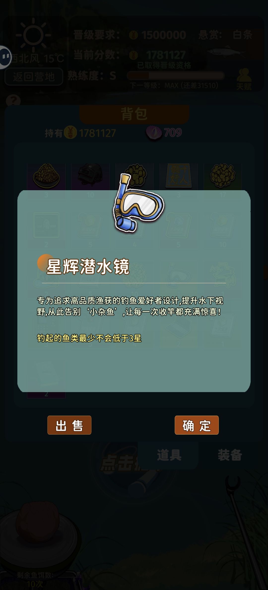 第三图之后鱼竿鱼线鱼钩刷到好的传说必须买(1000以上,次等的也得买个备用,不然刷不到更惨),不然第三关晋级赛过不了,强化后的鱼你都拉不回来,也勾不动。
