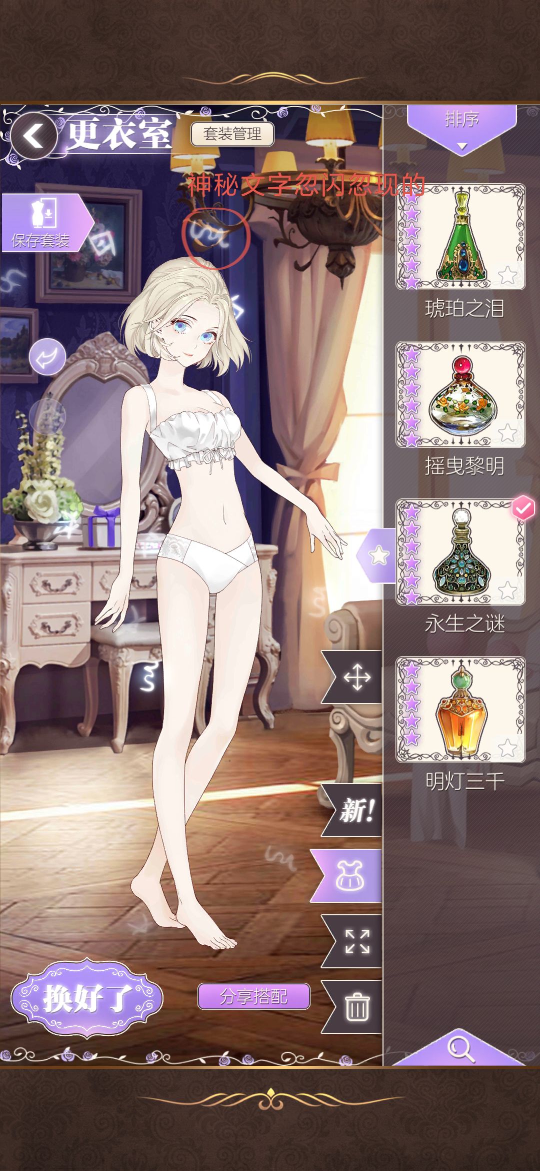 3.永生之谜,香水效果如p8所示,是神秘文字忽闪忽现的效果。