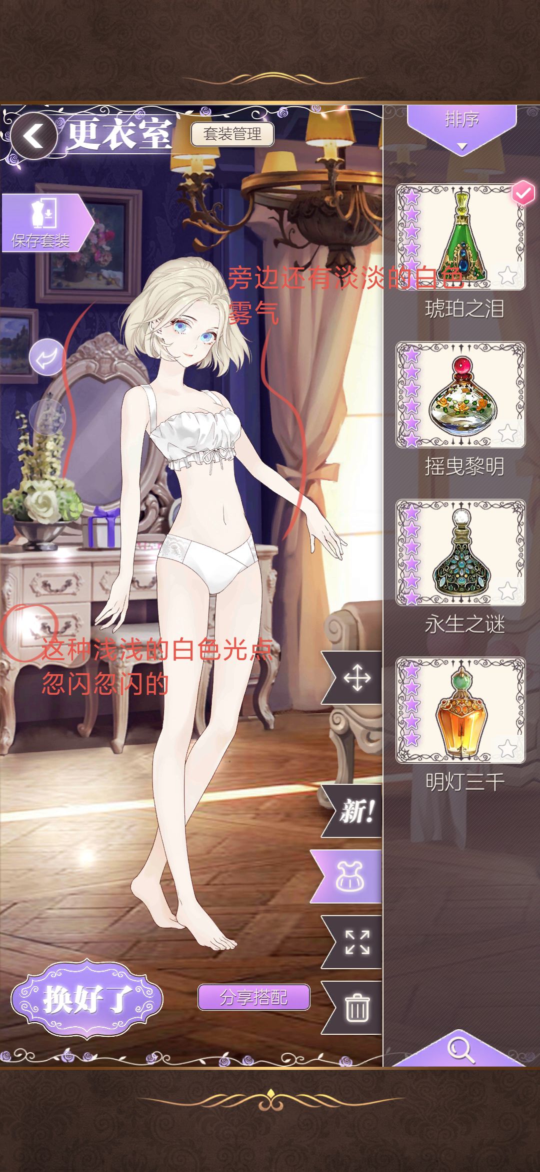 2.琥珀之泪,效果图如p6,点点的圆形白色光芒,和白色雾气。