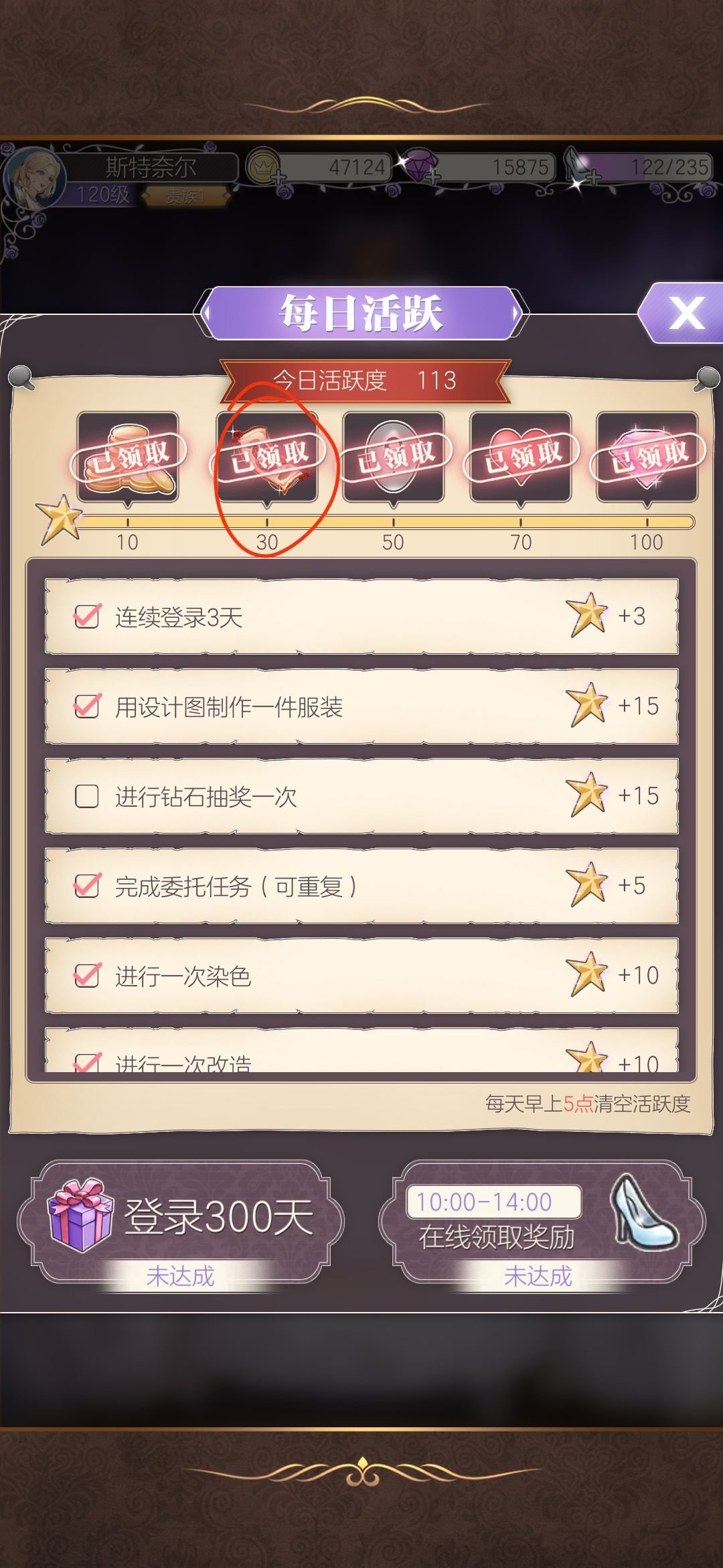 获取方法:如p3所示,商场划到最底端,这个奖池可以抽出孔明灯香水!不过这个奖池是玩家每天活跃度到达30就可以获得的一张活跃卷。这个活跃度奖池是个大混池!多少抽出看运气。我是第三十抽出的,不过慢慢来总会出的