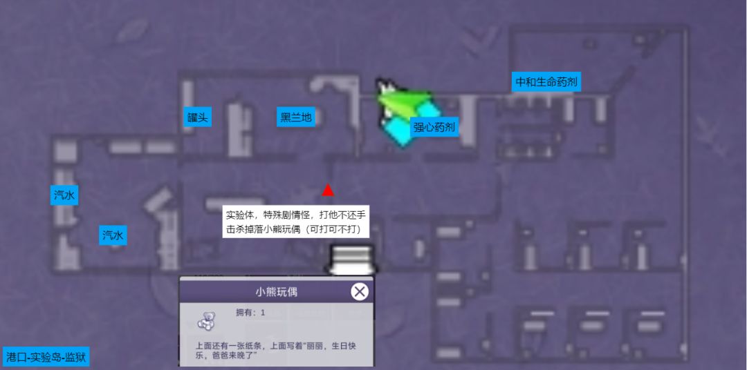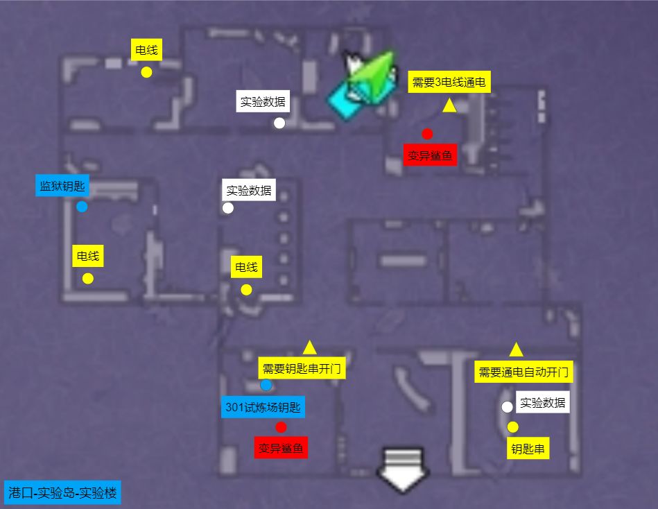 PS:这里需要说明,邮轮一共10个集装箱,10把集装箱钥匙都在邮轮二三层,如果邮轮和实验岛的集装箱钥匙不分开一次性用完,后期发现有遗漏的时候,哪处钥匙拿过哪处没拿,非常难排查,所以建议在拿实验岛的集装箱钥匙之前,一次性拿完邮轮的集装箱钥匙,并且开完邮轮的集装箱,再去动实验岛的集装箱钥匙;