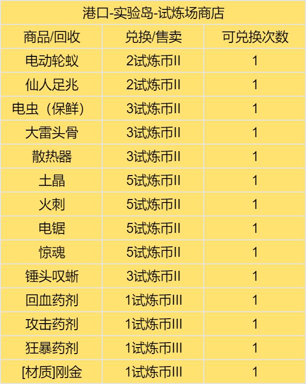 试炼场商店内的商品均为一次性兑换,兑换后不刷新,只能等更新看有没有上新
