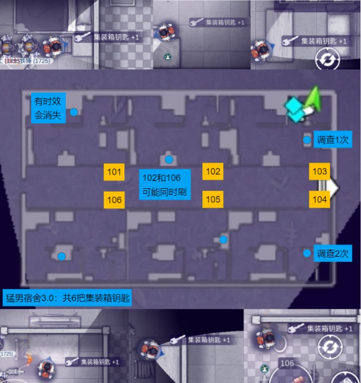 实验岛共6个集装箱,6把集装箱钥匙全部都在猛男宿舍3.0,因为集装箱钥匙用过,背包内道具会使用消耗掉,不显示在背包内,建议找齐6把集装箱钥匙后,统一去开集装箱,避免拿了一部分,用了一部分,无法核实自己一共拿了几把钥匙,哪里拿过哪里没拿;