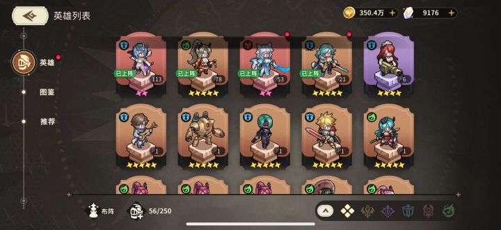 2.最后是输出英雄的选择,这里推荐养布都神子(单体伤害爆炸,打boss必备)、魅惑之爪(容易获取,中后排aoe伤害不俗)、蚀刻魔女(全体aoe用来推图打伤害还带控制),以上的三色卡最好到10星就停止培养(中期需要10星狗粮) ,可选一只上12星(建议布都神子),因为后期上13星需要有4只12星队友,如果全培养光暗狗粮需求过大 。