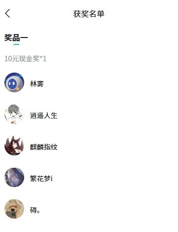 =奖品1=恭喜以下五位少侠获得10元现金*1!
