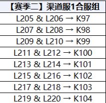 赛季一:合服后的服务器变为以L开头的服务器编号;赛季二:合服后的服务器变为以K开头的服务器编号;赛季三:合服后的服务器变为以J开头的服务器编号;赛季四:合服后的服务器变为以M开头的服务器编号。