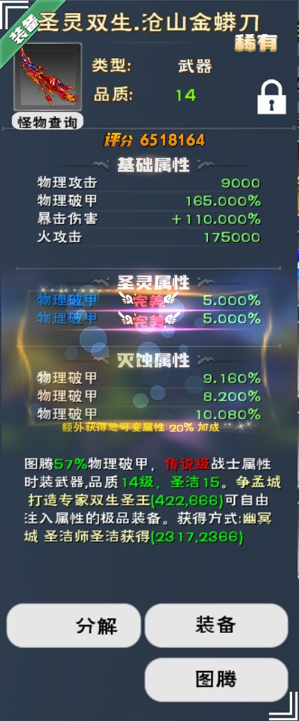 .终极 14 品质 圣灵双生装备合成