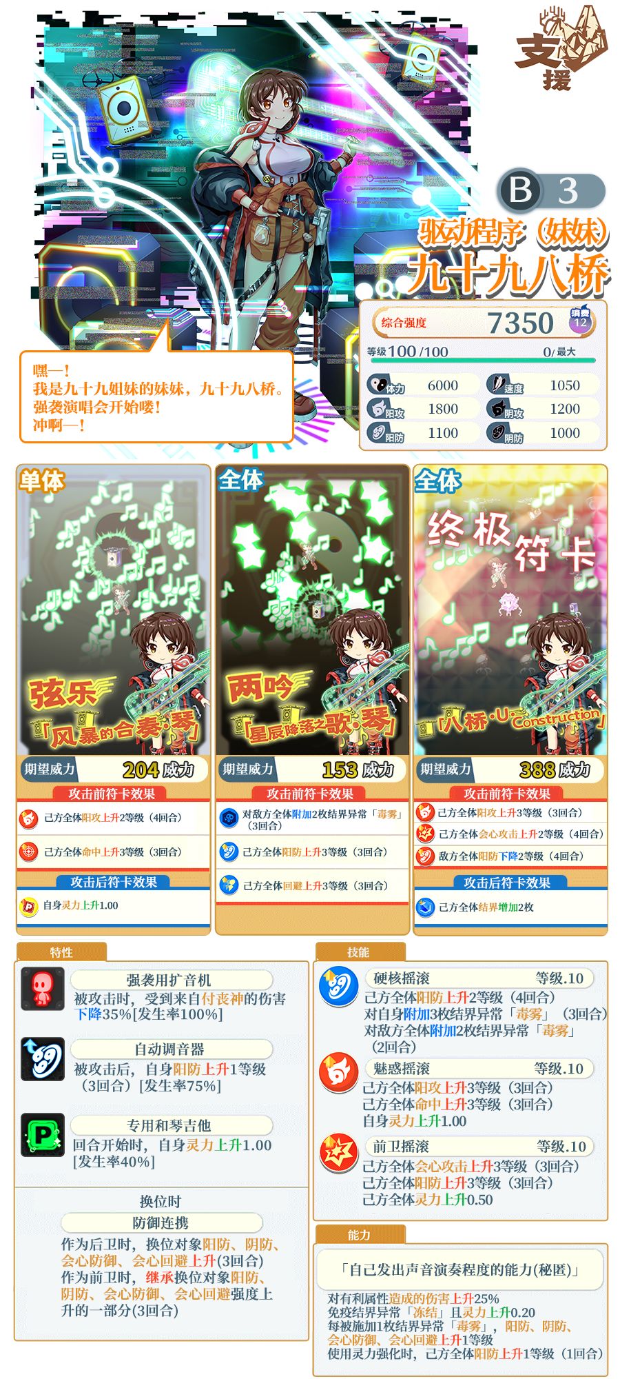 ※「驱动程序(妹妹) 九十九八桥」需要使用同名伙伴或者「天之替身」进行界限突破。不同泛异记号的伙伴、「天之替身」以外的替身无法对其进行界限突破。
