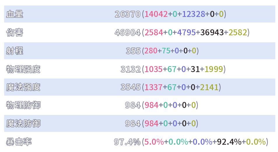 通过小伙伴装备,将家族的面板物理强度与魔法强度补至2500~3000,暴击堆至95%,剩下部位全部带上伤害转装备。
