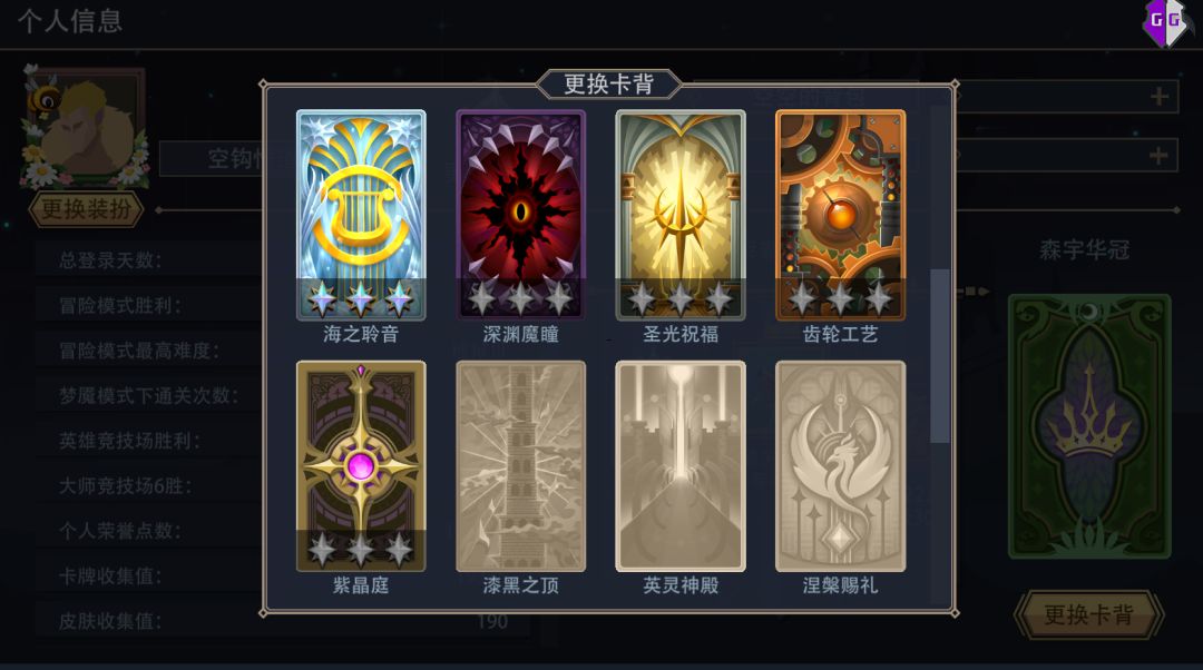 森宇 全知 不朽 锤子 海音 5个卡背已幻化