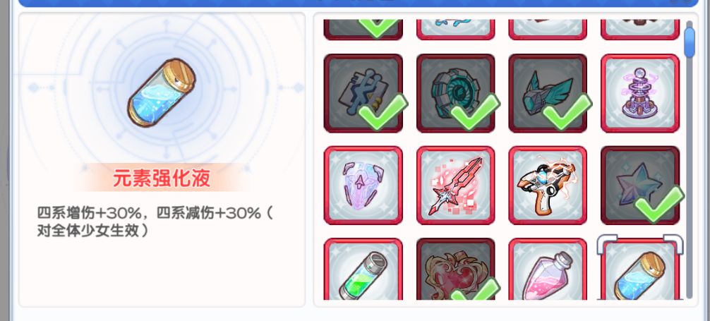 - 通用装具:暴击强化液、元素强化液、泡泡枪、圣剑,适合所有领域,优先提升基础输出能力。