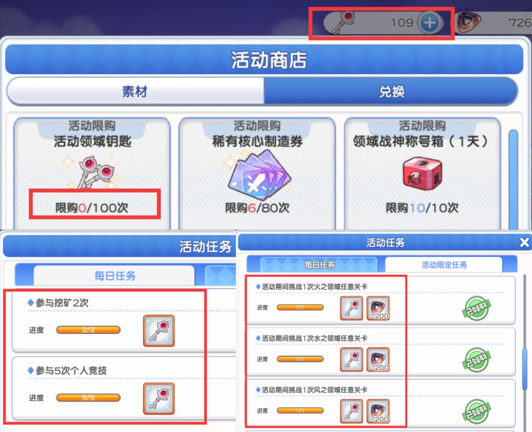 每日任务和活动限定任务也能获得钥匙