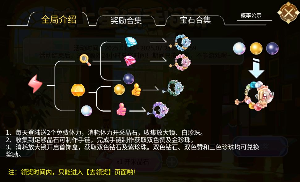 1、本活动分为三部分:开采晶石、首饰盒、奖励兑换;