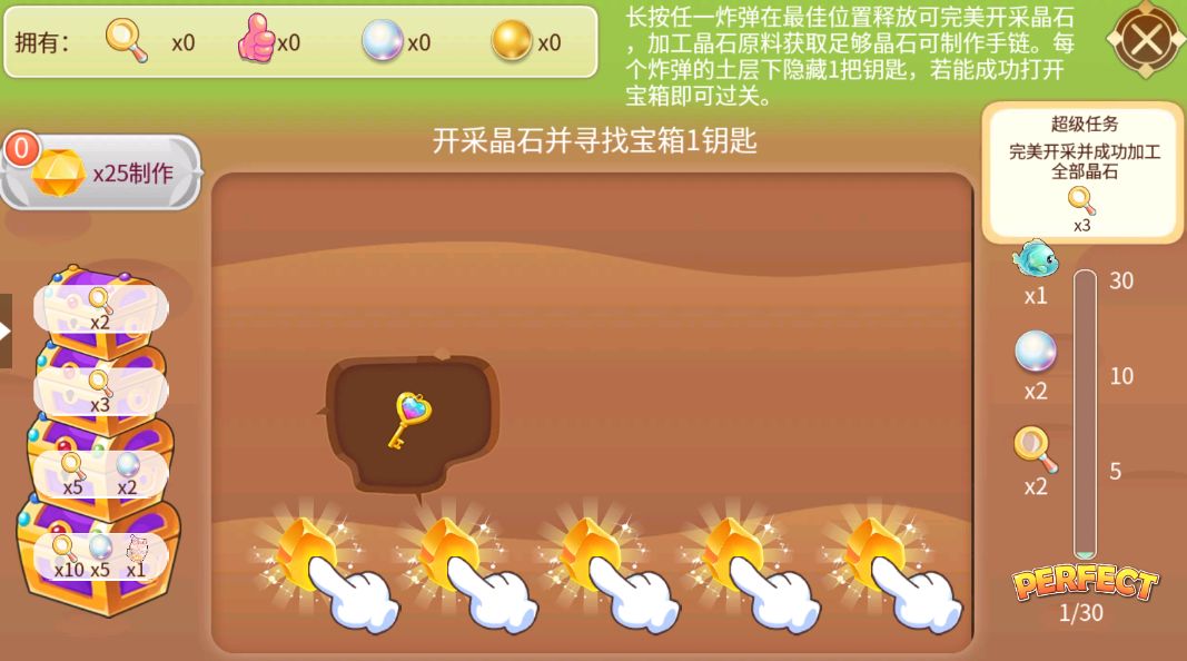 目标:收集放大镜、珍珠、赞积分