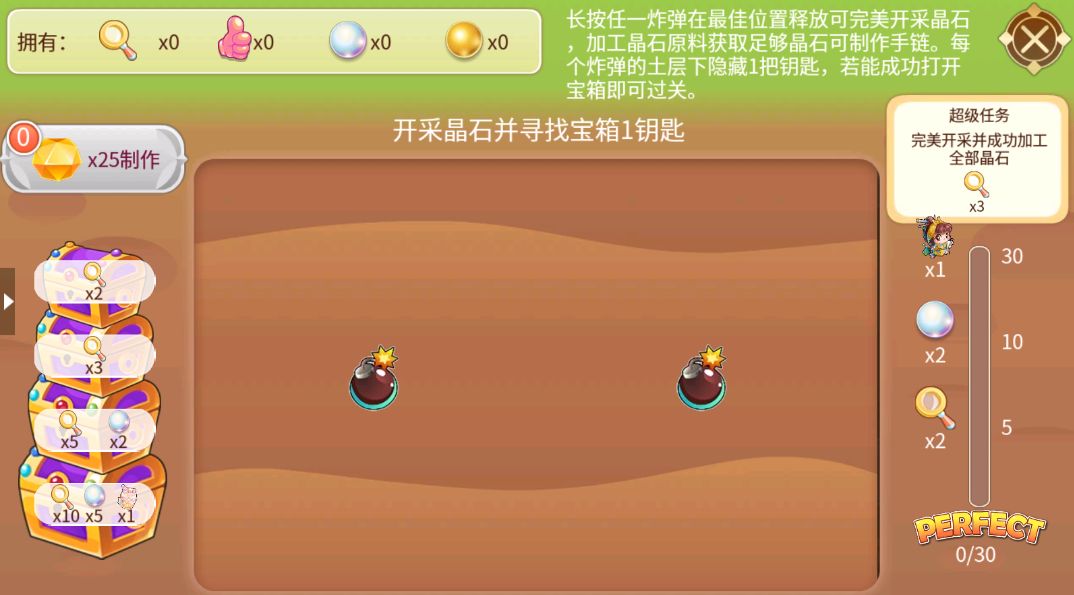 选择一个炸弹并长按,在最佳位置释放,开采晶石~