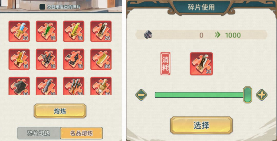 熔炼名品或名品碎片可以获得一定数量的钨金,一把5星名品/20个名品碎片熔炼后可获得1000钨金。溢出的名品碎片在后续赛季会解锁其他用途,建议主公妥善保管好这些稀有道具。