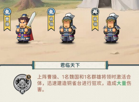 需要上阵曹操、1名魏国将领和1名群雄将领激活合体技。