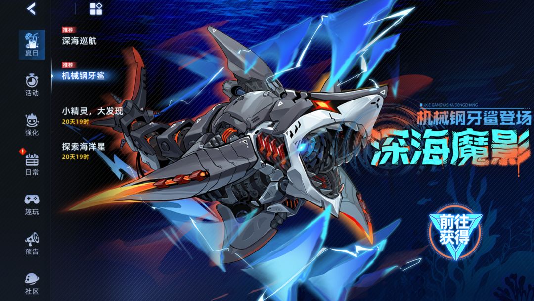 本周主打精灵是水 机械系的机械钢牙鲨,探索海洋星获取材料,获取黑晶锻钢,打造机械钢牙鲨!参与挑战即可获得「机械钢牙鲨」及其专属特性与第五技能!