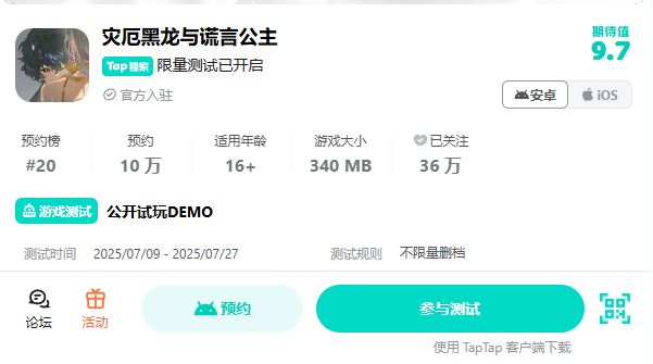 虽然TAPTAP发布会的试玩活动即将结束,鉴于大家的热情参与,我们向平台申请将免费试玩的时间延长一周,至7月27日再行关闭!
