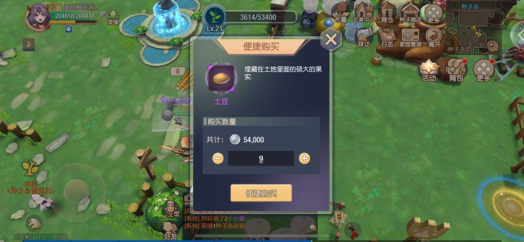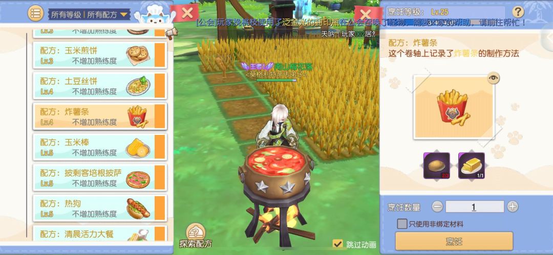 我们需要在完成5个牛奶的制作后,将烹饪技能提高到4级,并开始制作炸薯条。这个过程中,很多人可能等不及种地、做食材的漫长过程,此时可以先将土豆清空后,空一块地出来,直接购买9个土豆。黄油可以花费50金币加速获得。