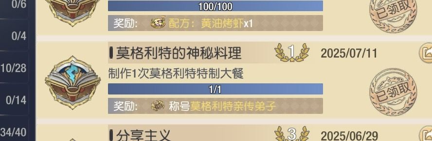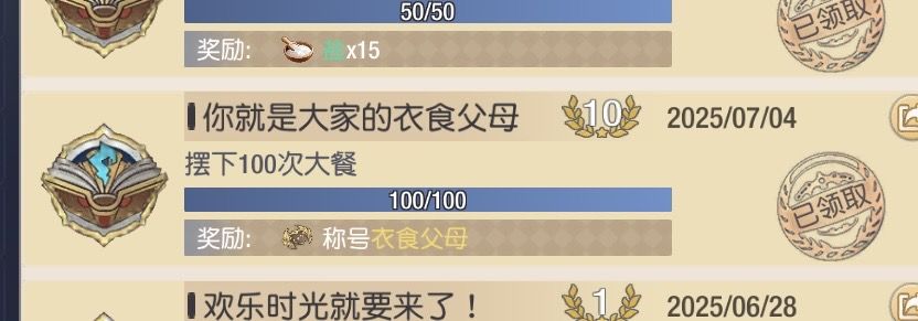 给公会制作大餐,即可拿到称号【你就是大家的衣食父母】【莫格利特的神秘料理】。恭喜你,此时你已经是未来的厨神了!