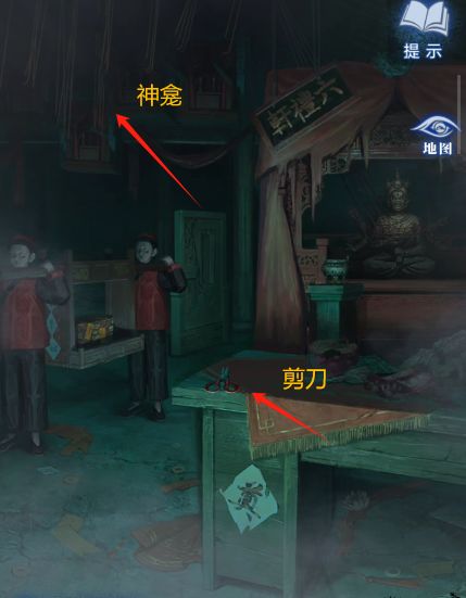②:前往六礼轩,从桌上拿到纸扎剪刀,点开六礼轩左边的神龛