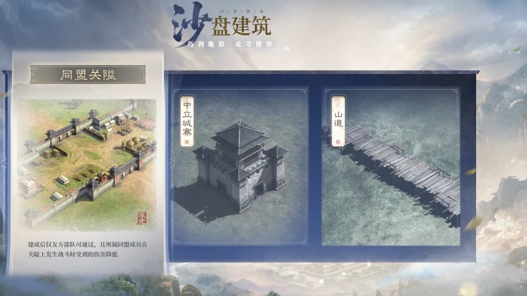 「同盟关隘」建成后仅友方部队可通过,且所属同盟成员在关隘上发生战斗时受到的伤害降低。