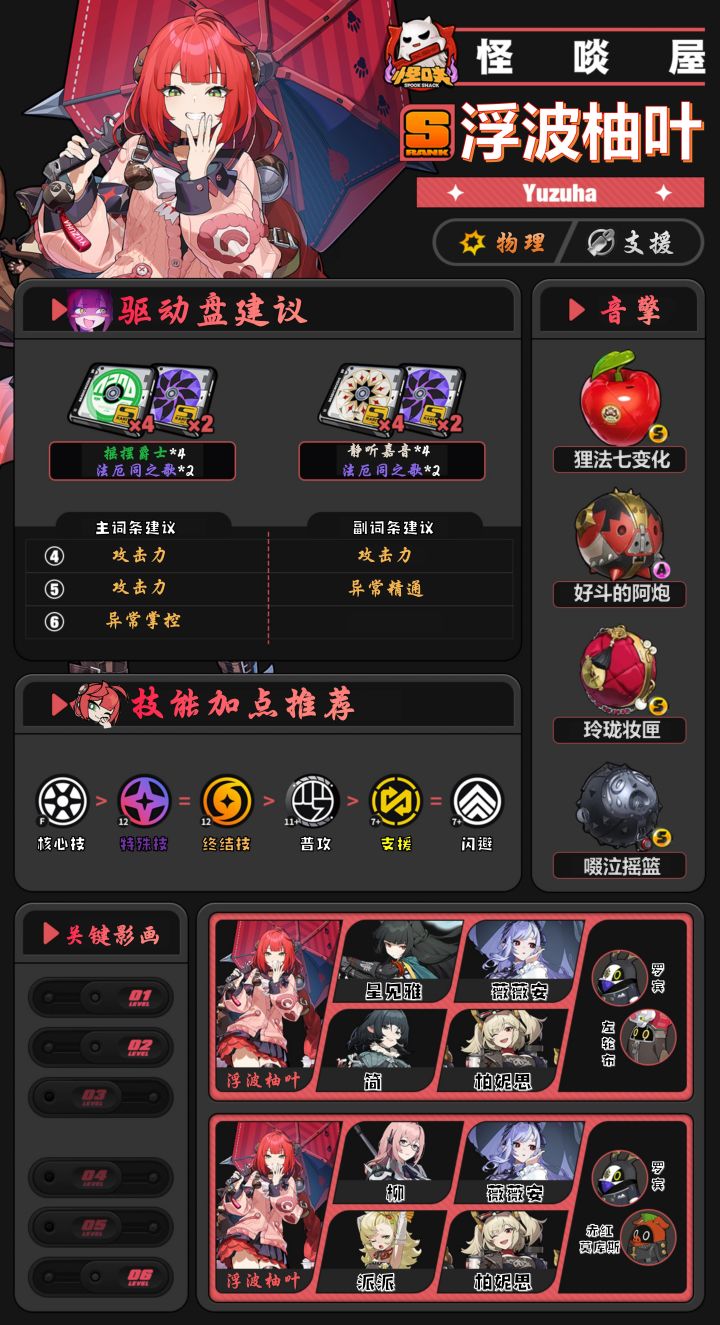 音擎推荐:优先推荐专属音擎【狸法七变化】,只有专属音擎可以让柚叶吃满200点异常掌控(即[额外能力:人多乐趣大]的加成)