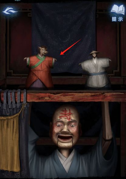 ⑩:将铁枝木偶放在弃煞牢老婆婆魔偶手里,拉开六藏菩萨的画布,左边三只手为牛狼鹰,右边三只手为虎猪羊,按上下顺序排列为虎牛狼猪鹰羊,使用数字对其画布可看见其他动物被遮住,只剩下虎猪羊,按照数字上的数字,在中间的机关中拉动三个动物的链子,获得极寒之水,拿给宁子服。