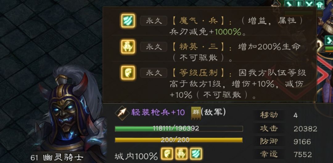 前几个回合现将敌将打残,第一次打死幽灵骑士,他会下马变成一人一马两个敌军,马没用攻击能力但是会跑向骑士进行合体,所以我们要阻止他俩接近。