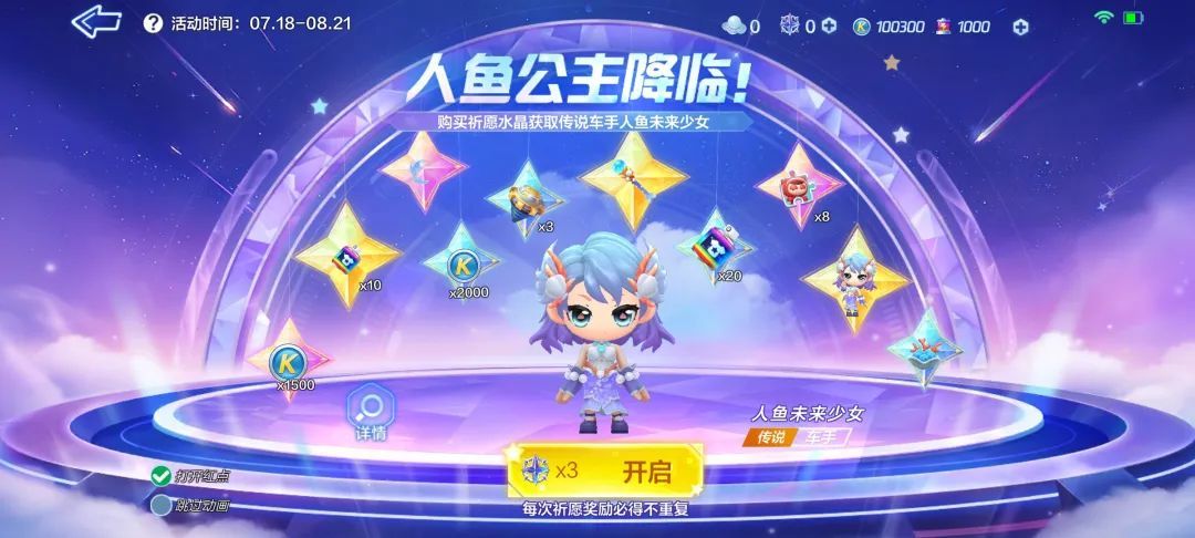 跨越时间来自未来的神秘女孩,潜入深海,成为大海的掌上明珠。7月18日,全新传说车手【人鱼未来少女】上线祈愿行动,参与活动就有机会获得传说车手【人鱼未来少女】、珊瑚水晶手杖、珊瑚宝藏头饰、人鱼之尾面饰等好礼!接受深海的浪漫气息~