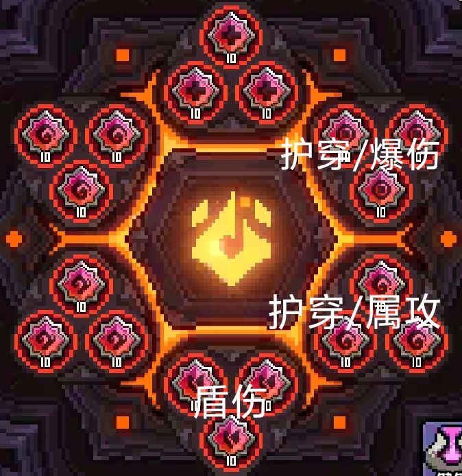 秘境环境下核心徽章主属性护穿收益大于功强,副属性统一为爆伤+火攻