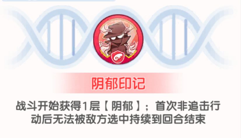 3、拥有【阴郁】的情况下,非追击行动会直接触发一次【阴郁】的效果,无需等待敌方行动后就可以进行触发,达到6层【阴郁】满层的情况下,非追击行动后最大能对3名敌方目标直接触发【阴郁】的效果