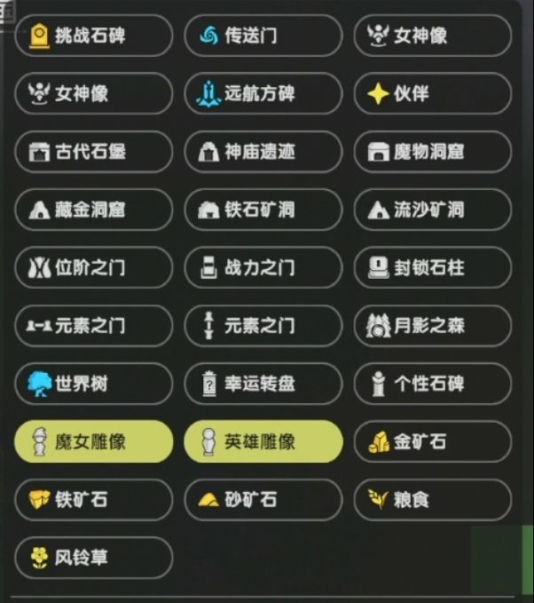 每个【岛屿】都会存在N个【雕像】,这些【雕像】可以分为:【魔女雕像】、【英雄雕像】。