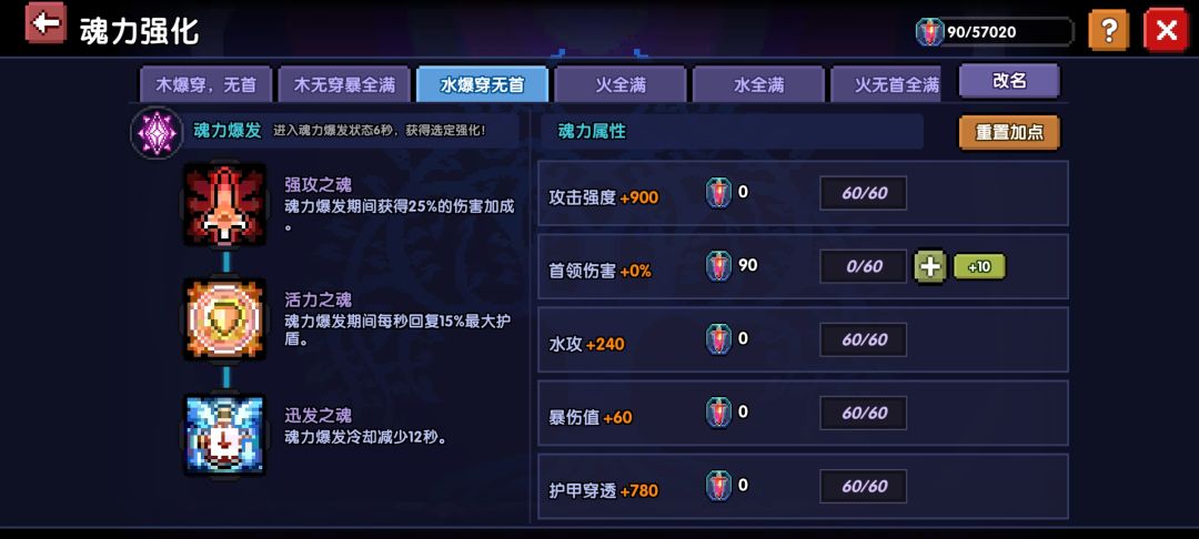 优先点够暴击,点满穿透、水攻、爆伤,攻强和无限攻强8:3分开点即可