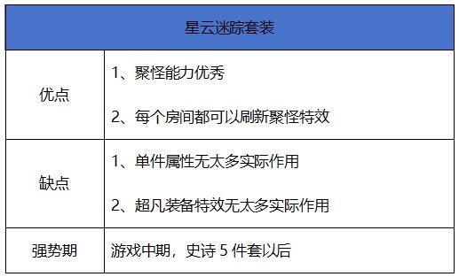 星云迷踪的单件效果是通过各种方式使敌人进入失明状态,这个状态对于现版本大部分boss作用不大,在试炼之塔等副本中作用很明显,算是比较鸡肋吧