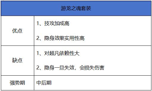 这件超凡对于游龙之魂套装来说很重要,因为套装效果里的隐身,在被敌人攻击到时会失效,而隐身效果在的时候,才会触发额外的技攻效果,有了超凡装备就不会有这个担心了