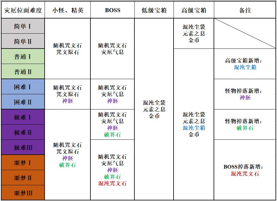以下,为各难度奖励总览: