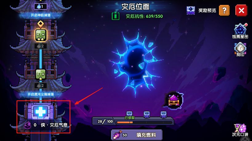 击败灾厄位面副本首领后,会掉落灾厄气息×10,在灾厄位面界面消耗灾厄气息可解锁副本难度。