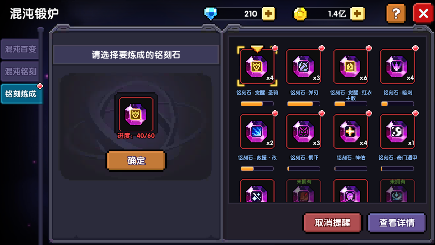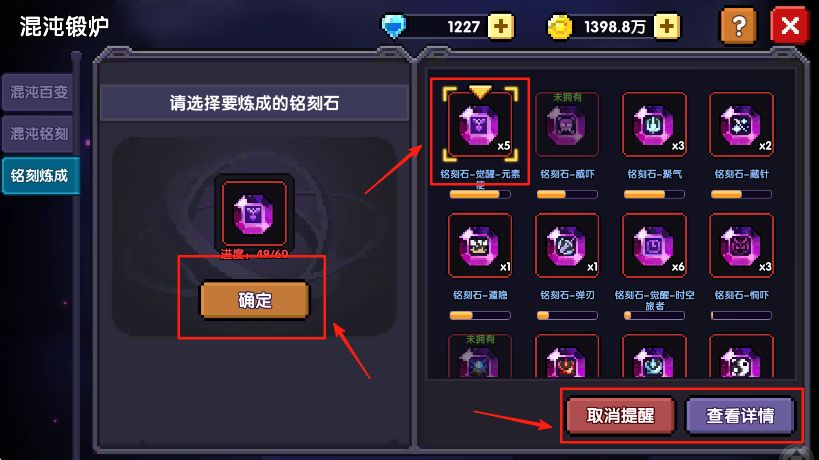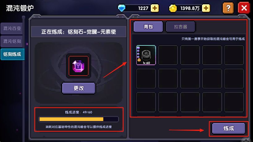开始冒险,混沌地牢,混沌锻炉,铭刻炼成,对先前标记红点提醒的铭刻石进行炼成。