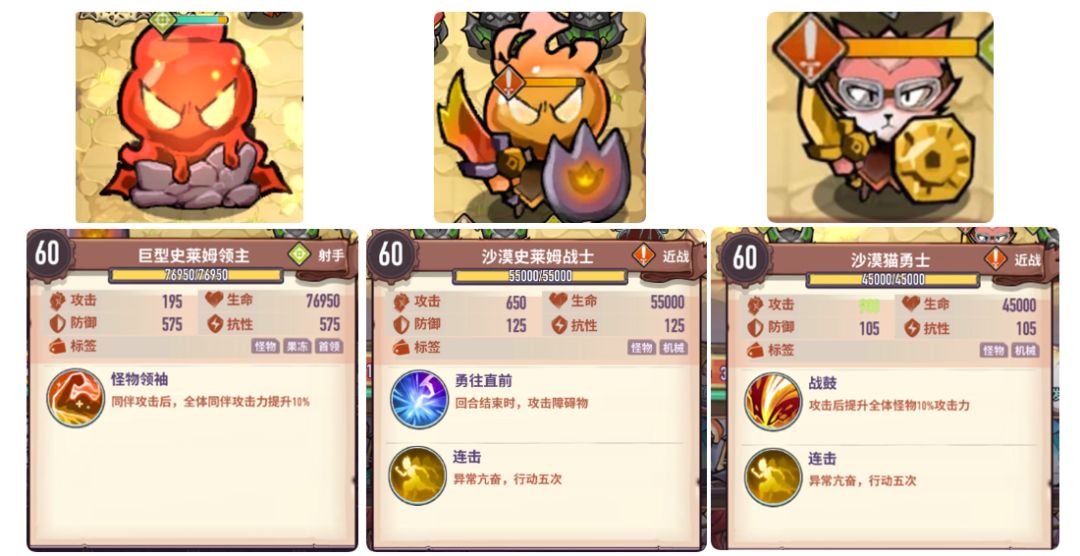 在地图上存在『巨型史莱姆领主』时,可以利用『沙漠史莱姆战士』和『沙漠猫勇士』高攻击频率提升蝙蝠攻击力