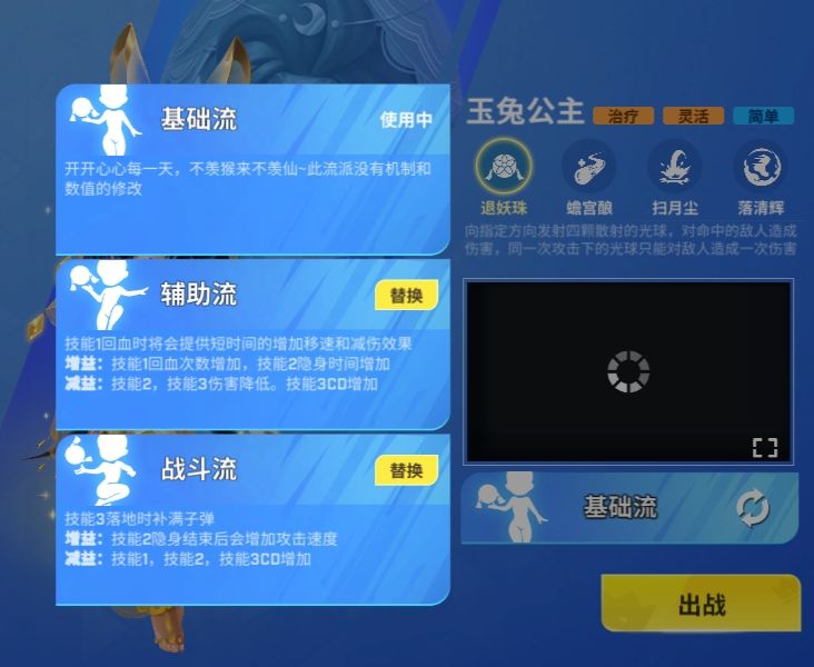 每个角色有普攻和3个技能作为输出手段,通过调整技能特性,每个角色可分为3个不同的流派,少年可以在进入游戏之前选择自己喜欢的流派,后续通过完成任务还可以解锁其他角色和流派哦~