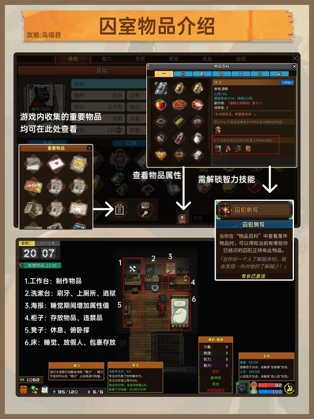 大家好我是乌喵君,刚好最近一直在玩《动物迷城》,游戏的新手攻略很少,特别是初始的角色属性面板介绍,囚室介绍,以及一些小技巧,本期图文希望对各位玩家有帮助,如有错误的地方,请评论区指正!
