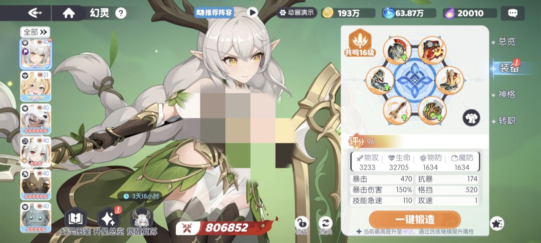 格挡闪避拉满的鹿坦,跟铁一样硬,和四个大汉play都不带虚的。现阶段在旷野队自动模式里,鹿女比雅典娜要硬的多。