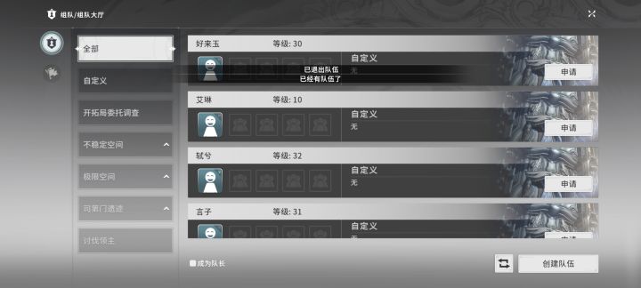 最悲剧的来了,退出队伍成功,我重新匹配,显示我无法匹配,我定睛一看,咋我们三人队伍还在,我继续退出队伍,仍然显示成功,重新匹配依旧如此,我大退游戏,重新操作,队伍依然还在,我小退游戏,队伍依旧如此,我直接申请加入别人队伍,显示我已经有队伍了。