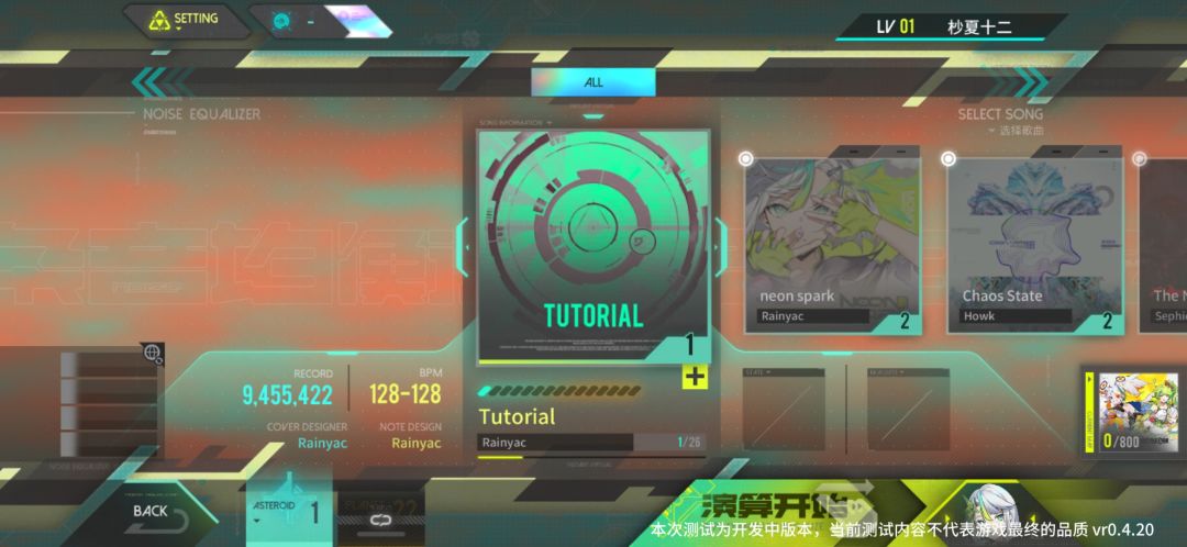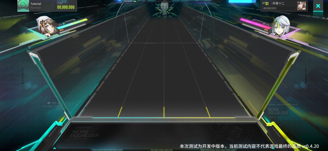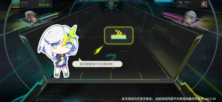 动态背景随音乐节奏变色(如快节奏时色彩更鲜艳)、角色设计兼具科技与二次元风格,UI的未来感特效(如音符轨道的荧光线条)强化赛博氛围。