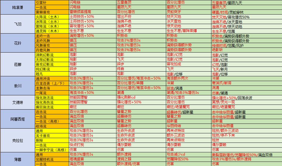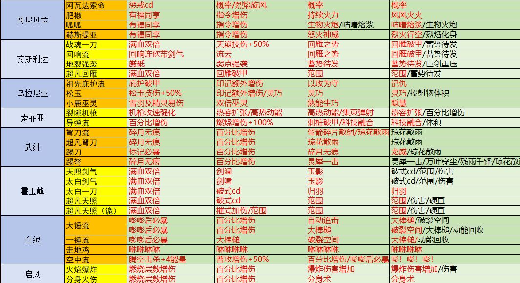 1.对于由历史问题导致的部分角色的常用流派不全面等问题进行完善